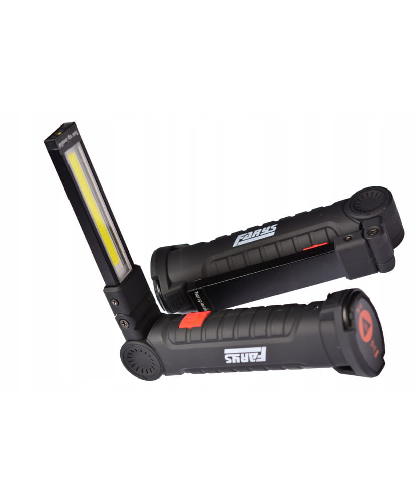 Niezbędna w domu, garażu czy warsztacie lampa COB LED firmy Farys. Latarka świeci bardzo mocnym światłem. Kompaktowa konstrukcja latarki umożliwia łatwe przenoszenie i przechowywanie. Po złożeniu z łatwością mieści się w kieszeni. Wygodna, praktyczna, niezbędna w każdej sytuacji wymagającej poręcznego, dodatkowego źródła światła. Mocna dioda LED generuje silne i jasne światło. Dzięki zastosowaniu technologii LED COB (pasek diodowy) latarka daje dużo więcej światła w porównaniu do tradycyjnych a przy tym jest dużo bardziej oszczędna.