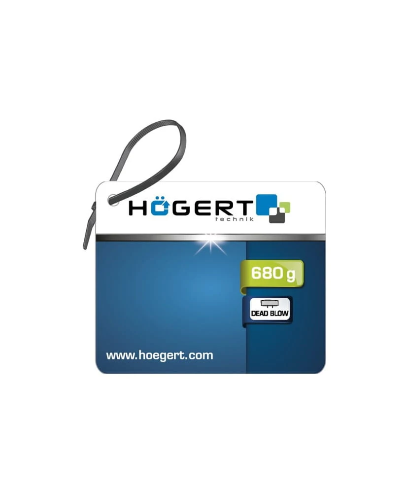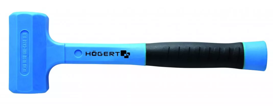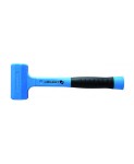 Młotek bezodrzutowy z gumowym obuchem z próżnią. Obuch wypełniony drobnymi ziarnami metalu, które niwelują efekt odbicia od materiału. Produkt przeznaczony do prac budowlanych.