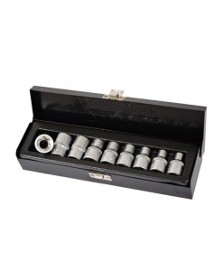 Profesjonalny zestaw 9 nasadek TORX E, wykonany z najwyższej jakości stali narzędziowej chrom-vanadium CrV .