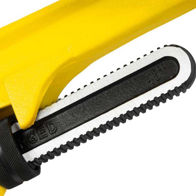 Tak – długość 48” daje ogromną dźwignię, a zęby zapewniają pewny chwyt.