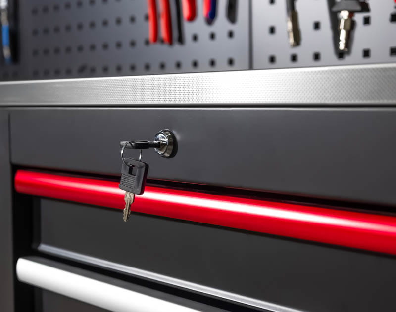 - Wszystkie szafki wyposażone w zamki – zapewniają bezpieczeństwo przechowywanych narzędzi i materiałów.
