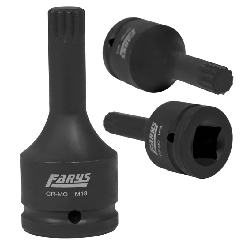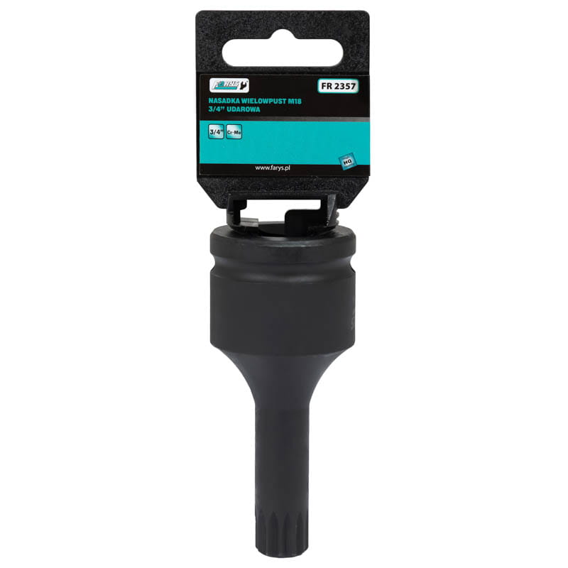 Profesjonalna nasadka wielowpustowa M18 marki Farys, przeznaczona do pracy z kluczami udarowymi. Wykonana z wytrzymałej stali Chrom-Molibden (Cr-Mo), zapewnia wysoką odporność na przeciążenia oraz długą żywotność nawet w intensywnym użytkowaniu warsztatowym.