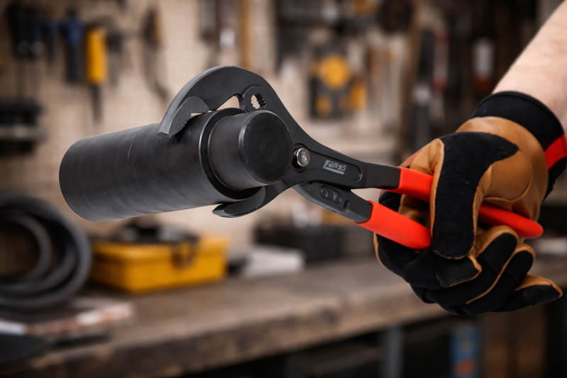Dzięki regulowanemu przegubowi można łatwo dopasować rozstaw szczęk do średnicy elementu, co zwiększa komfort i precyzję pracy.
