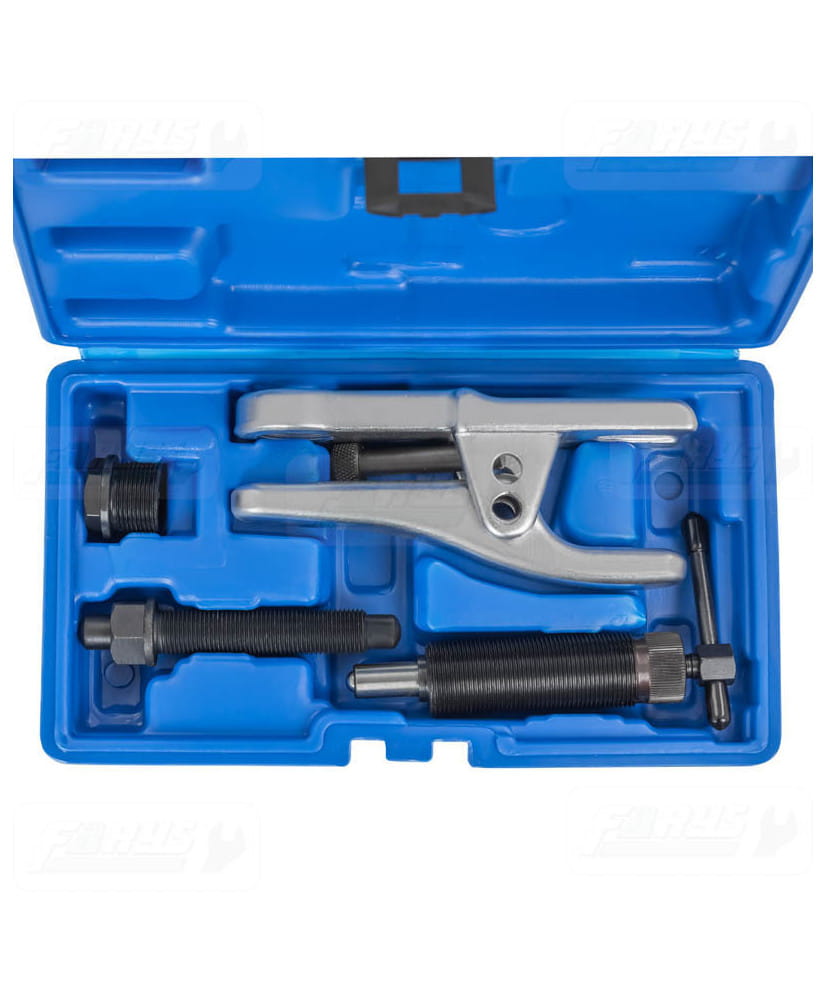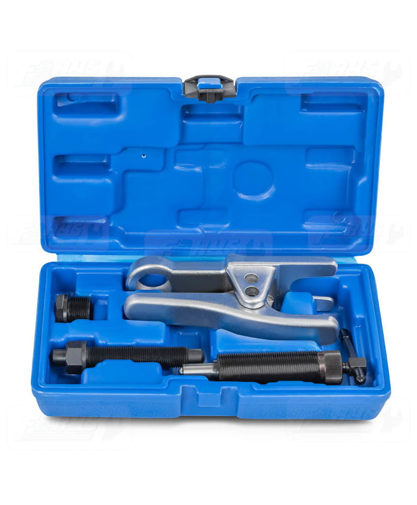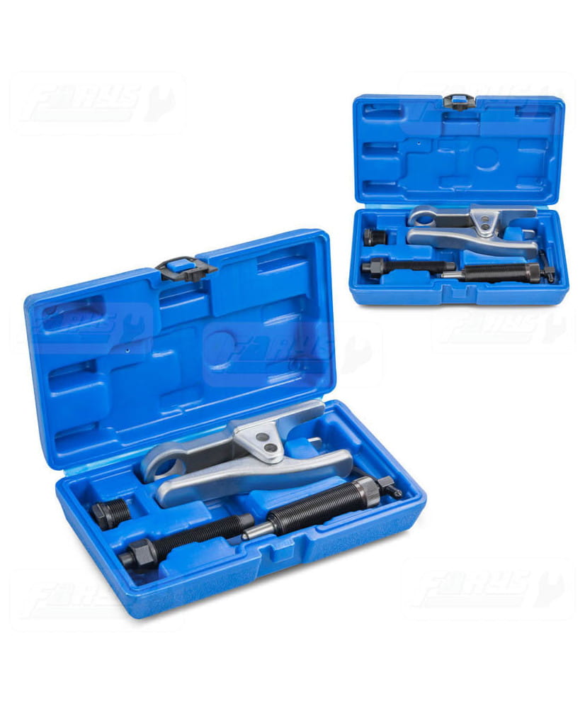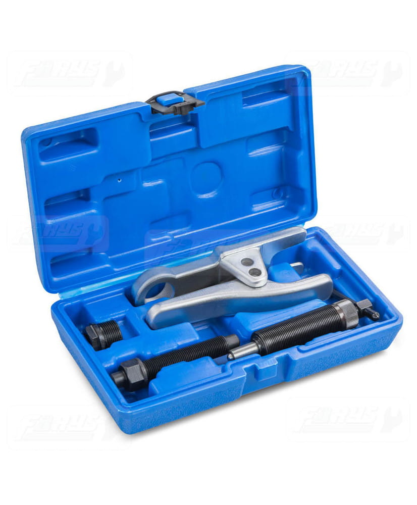 Ściągacz idealnie nadaje się do ściągania przegubów kulistych, sworzni czy też drążków. Wykonany z utwardzanej stali dzięki czemu nie musimy używać narzędzi do pobijania. Ściągacz pracuje na zasadzie prasy śrubowej o drobnym gwincie, nie uszkadza drążków i stabilizatorów.