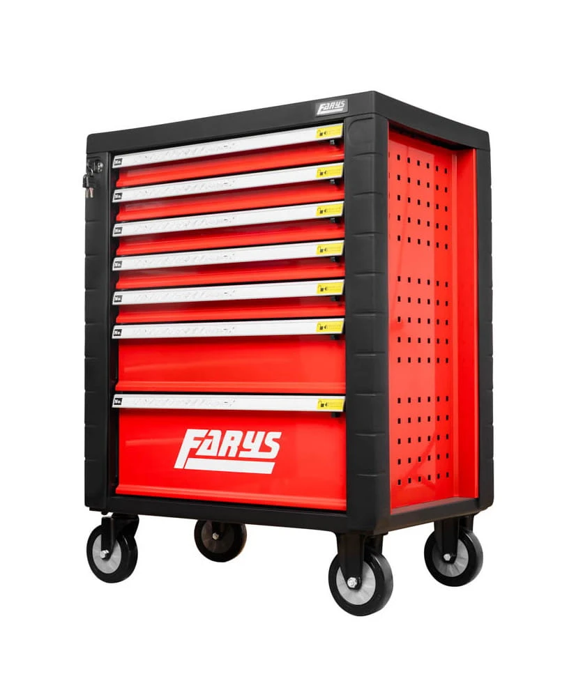 Nie musisz się ograniczać podczas pracy! Wózek narzędziowy z siedmioma szufladami ułatwi realizację wielu zadań, zarówno dla majsterkowiczów, jak i firm wykonujących prace usługowe, takie jak zakłady mechaniczne. Wysoka pojemność i łatwe wysuwanie szuflad to kluczowe zalety tego modelu.