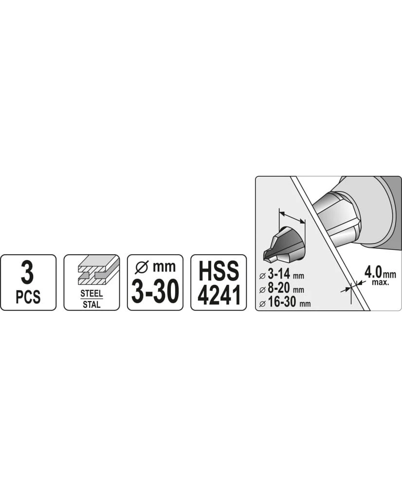 YATO Zestaw wierteł stożkowych 3 szt. YT-44730