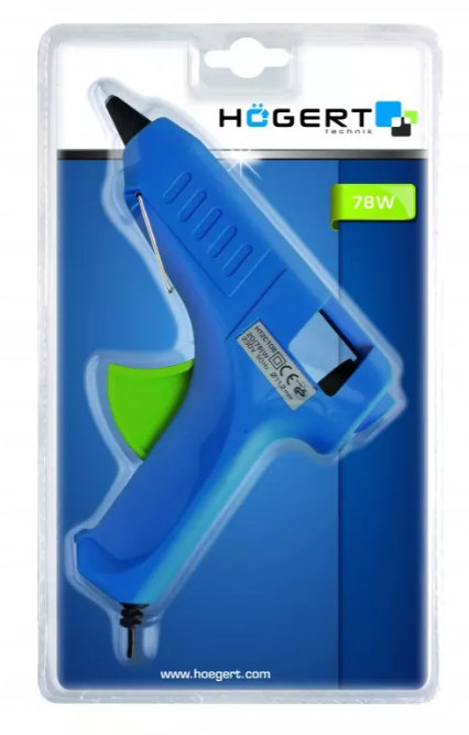 Pistolet do kleju termotopliwego – klejenie m.in. drewna, okien, materiałów tekstylnych, folii, papieru, kartonu, tworzyw sztucznych, ceramiki, skóry. Skleja materiały, które mogą zostać poddane działaniu temperatury powyżej 70°.