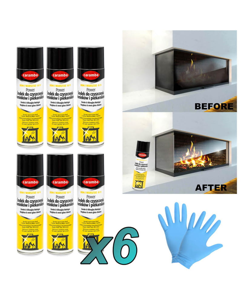 6szt. Caramba Aktywna pianka do czyszczenia szyb kominków i piecyków 500ml + 2x rękawiczki (1para)