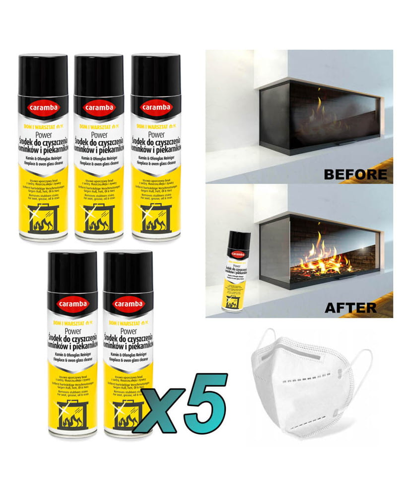5szt. Caramba Aktywna pianka do czyszczenia szyb kominków i piecyków 500ml + 1x maseczka FFP2