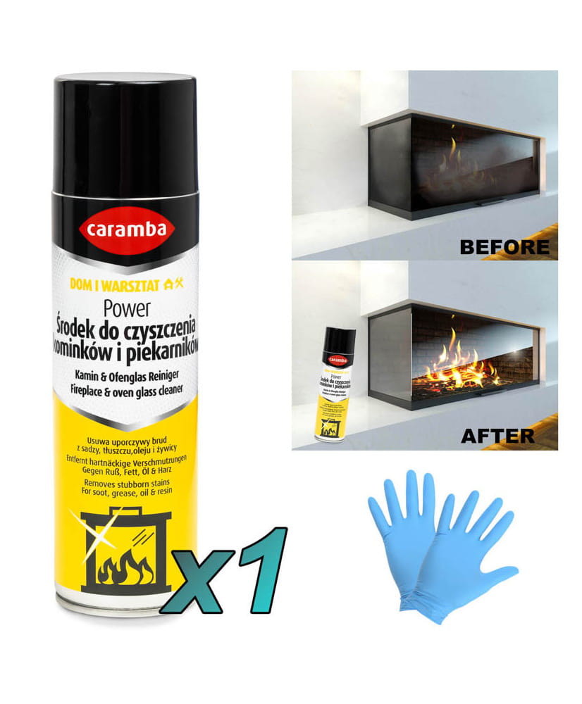 1x Caramba Aktywna pianka do czyszczenia szyb kominków i piecyków 500ml + 2x rękawiczki (1para)