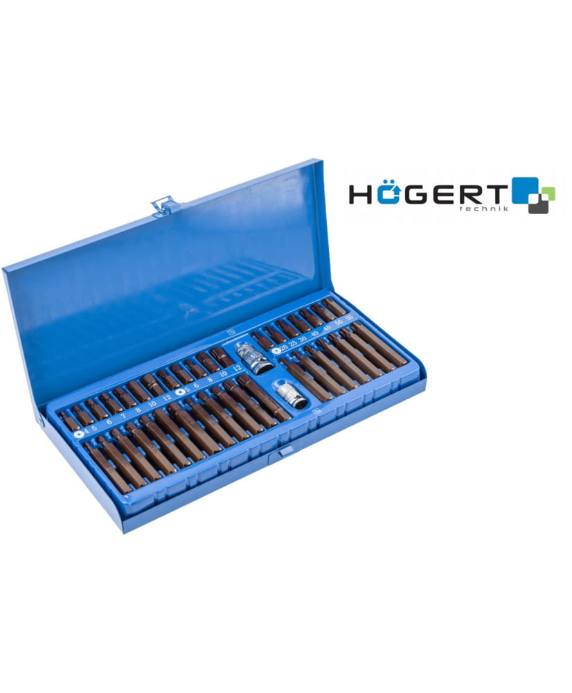 40-elementowy zestaw końcówek wkrętakowych sześciokątnych hex, torx i spline. Wykonane z mocnej i trwałej