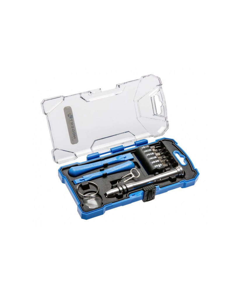 W zestawie: 12 bitów, przedłużacz 9.5 cm, dwa podważacze, klucz do karty SIM oraz przyssawka.