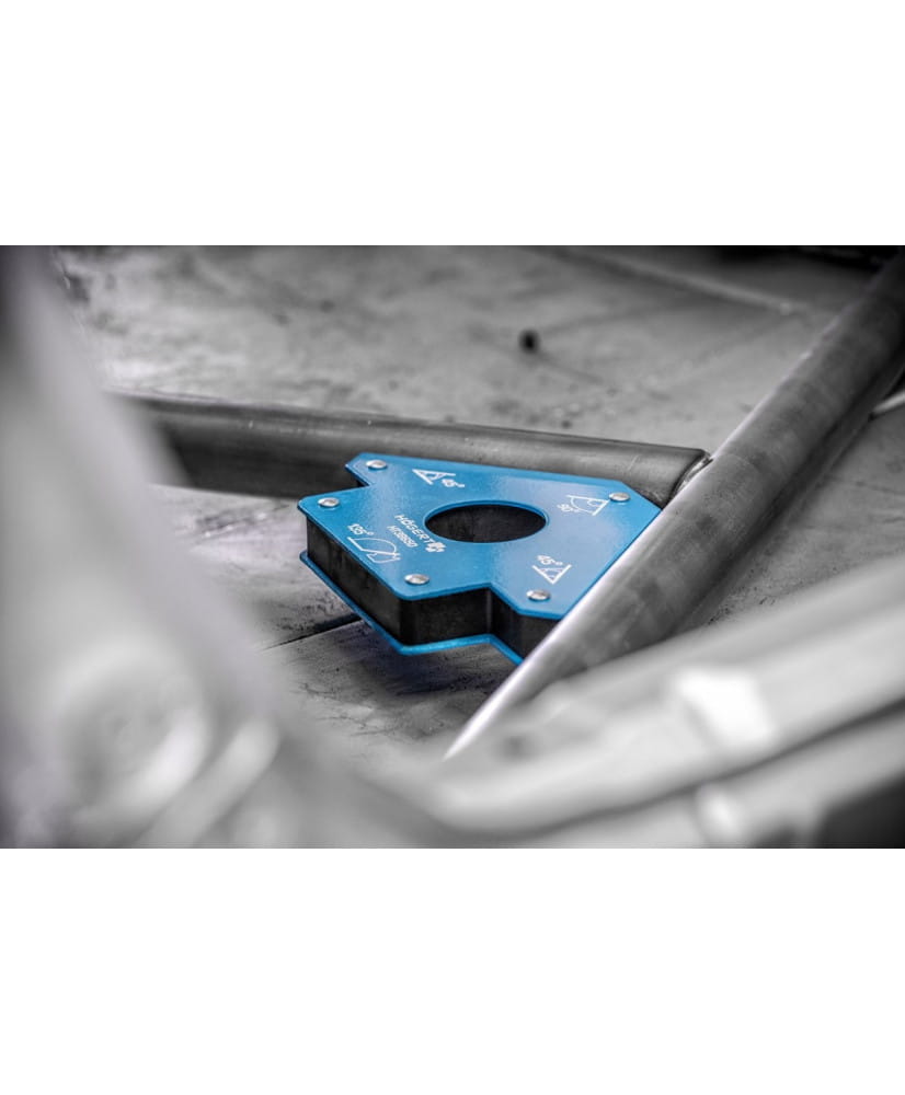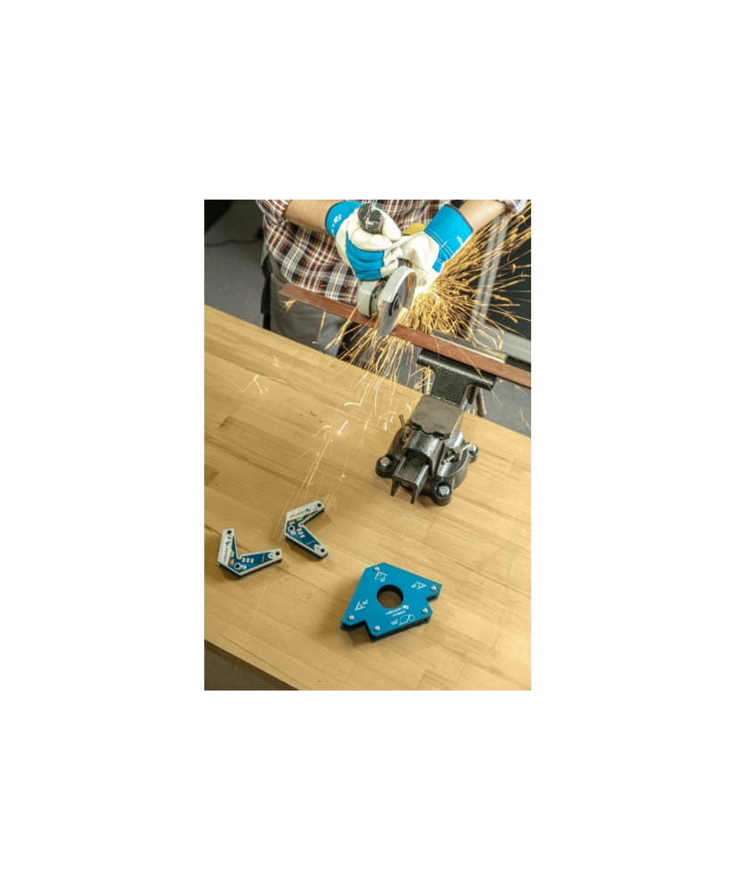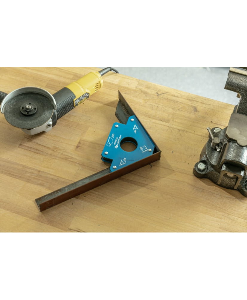 - kształt strzałki oraz silne magnesy pozwalają precyzyjnie ustawić obrabiane przedmioty pod kątem 45°, 90° i 135°