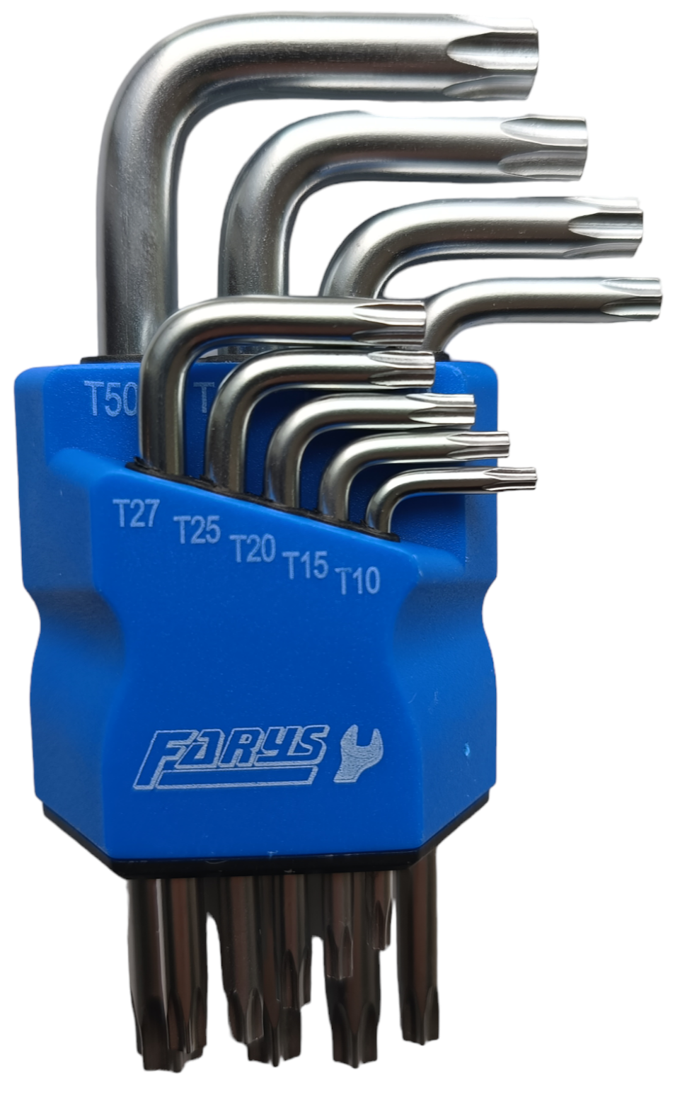 Wysokiej jakości zestaw kluczy gwiazdkowych Torx Marki Farys.