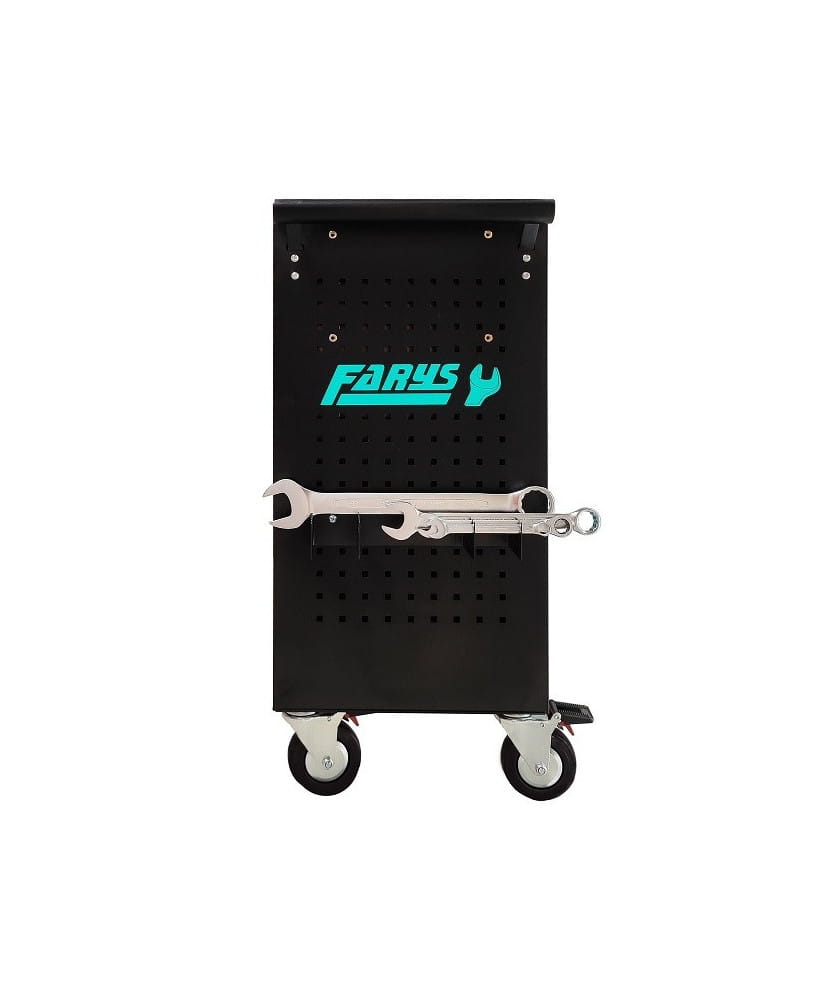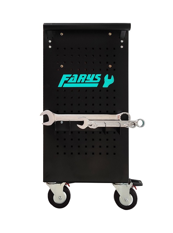 Wytrzymała metalowa konstrukcja stabilnie utrzyma klucze płasko-oczkowe.... lub pokrętła typu T, tarcze szlifierskie, długie wiertła, brzeszczoty, przedłużacze....