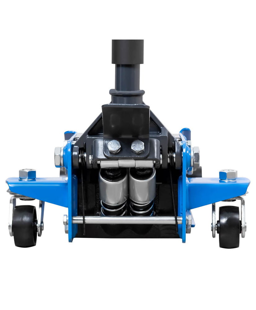 - Podnośnik wyposażony jest w szerokie stalowe koła osi przedniej oraz łożyskowane koła skrętne osi tylnej.
