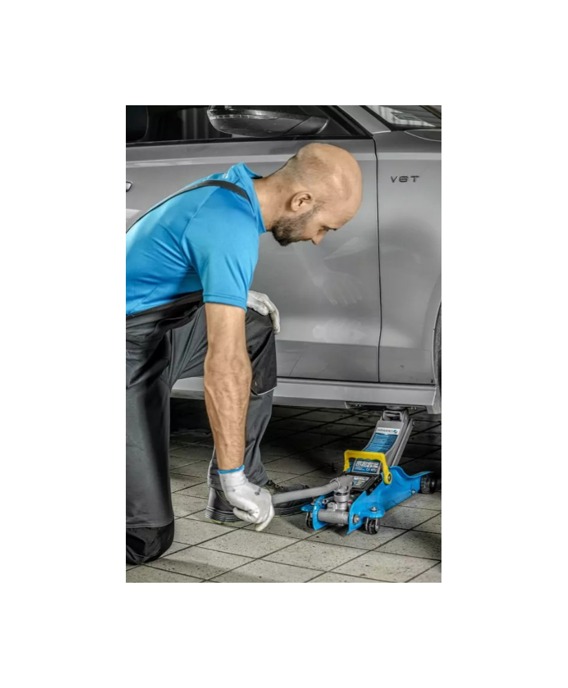 Podnośnik typu żaba, do domowego garażu jak i profesjonalnego warsztatu. nadaje się do aut sportowych z niskim zawieszeniem poprzez niski profil. Konstrukcja urządzenia jest wzmocniona wspornikami, i przetłoczeniami co przekłada się na wysoką wytrzymałość. Podnośnik fabrycznie zalany jest olejem hydraulicznym – gotowy do użytku.