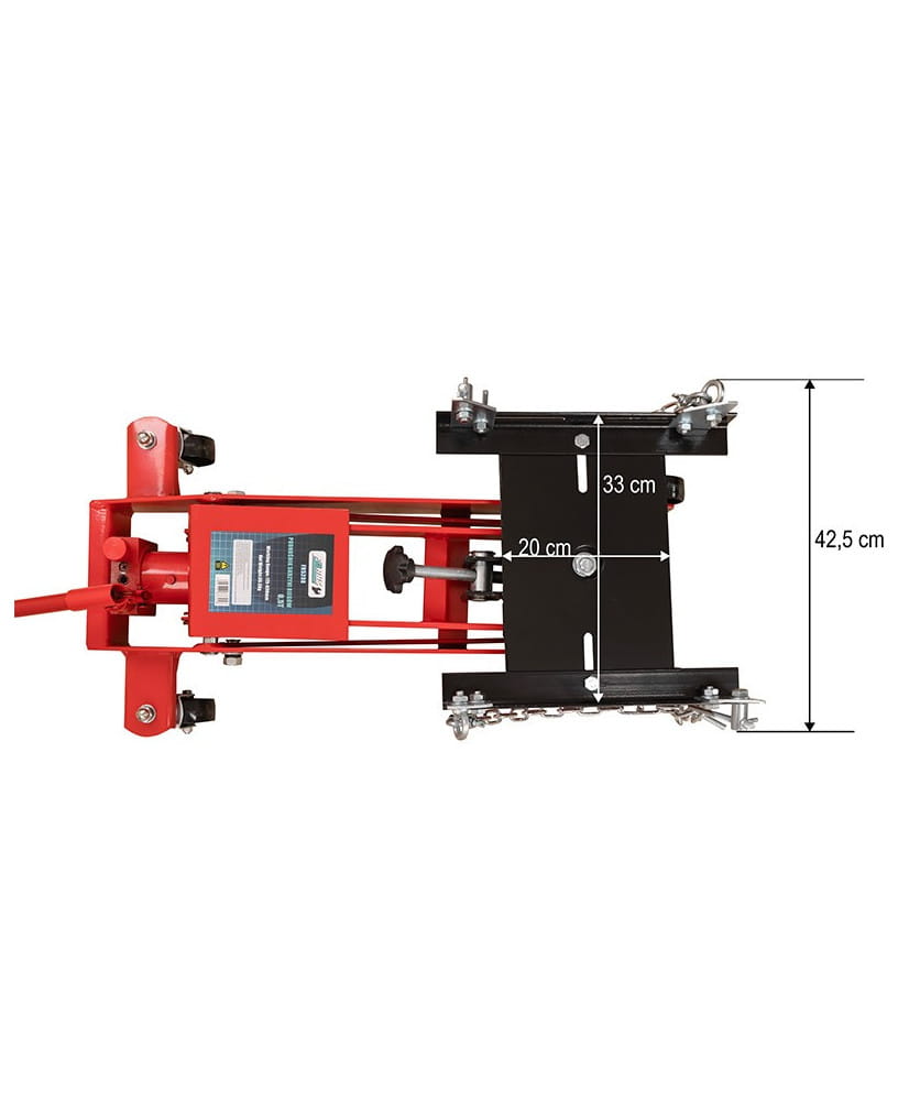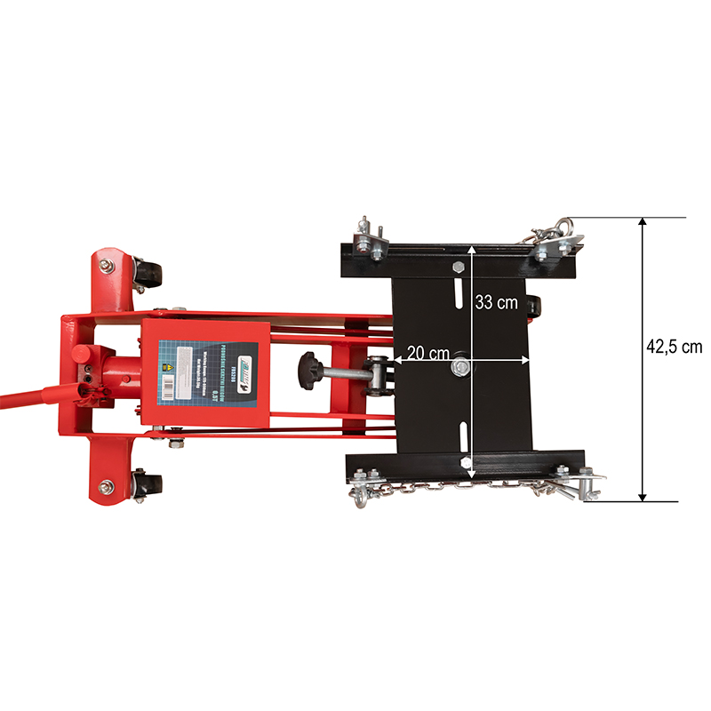 Nasz podnośnik posiada regulowane siodło, można dostosować nie tylko jego pochylenie, ale także szerokość i rozstaw śrub mocujących łańcuchy, co jeszcze bardziej zwiększa jego wszechstronność i wygodę użytkowania. Niska konstrukcja pozwoli dotrzeć do trudno dostępnych miejsc, nawet gdy pojazd znajduje się blisko ziemi.