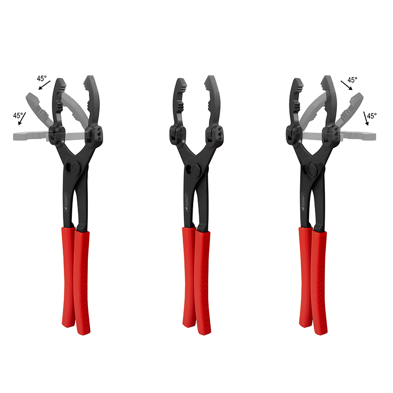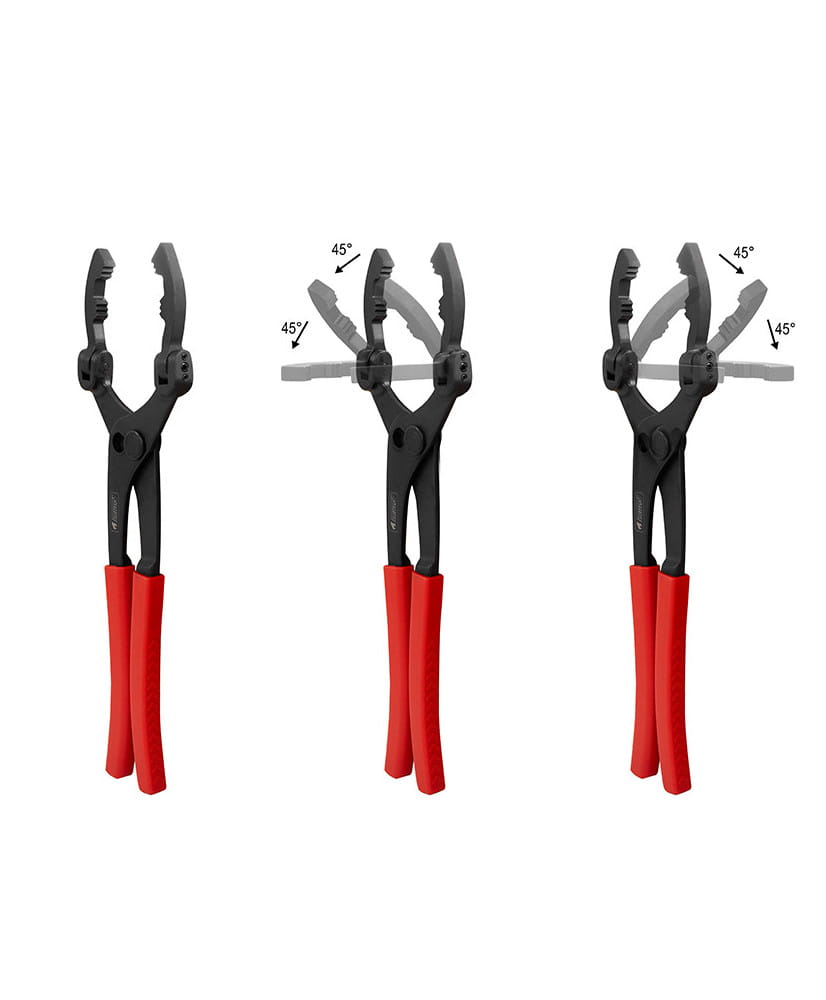 Szczęki mogą być nachylane do 90° w obu kierunkach, co pozwala na poluzowanie większości filtrów paliwa i oleju w trudno dostępnych miejscach, które nie byłyby osiągalne przy użyciu większości standardowych narzędzi do odkręcania filtrów.