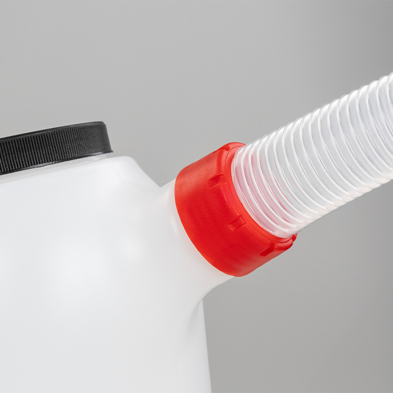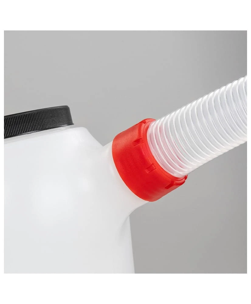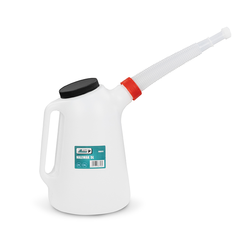 Zrobiony z wytrzymałego tworzywa PE, odpornego na substancje eksploatacyjne. Wyposażony w elastyczny lejek z zatyczką ułatwiający nalewanie płynów w trudno dostępnych miejscach oraz pokrywę z gwintem, zabezpieczającym płyny przed zanieczyszczeniem.