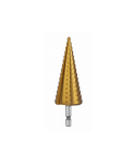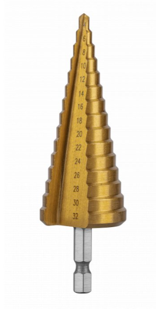 Wiertło stopniowe przystosowane do wiercenia w różnych rodzajach stali, metalach nieżelaznych, miedzi, mosiądzu i aluminium, stali nierdzewnej, tworzywach sztucznych oraz drewnie. Umożliwia wiercenie precyzyjnych otworów. Znajdzie zastosowanie w zakładach blacharskich, ślusarskich, warsztatach samochodowych czy w pracy instalatorów i elektryków. Do użytku profesjonalnego.