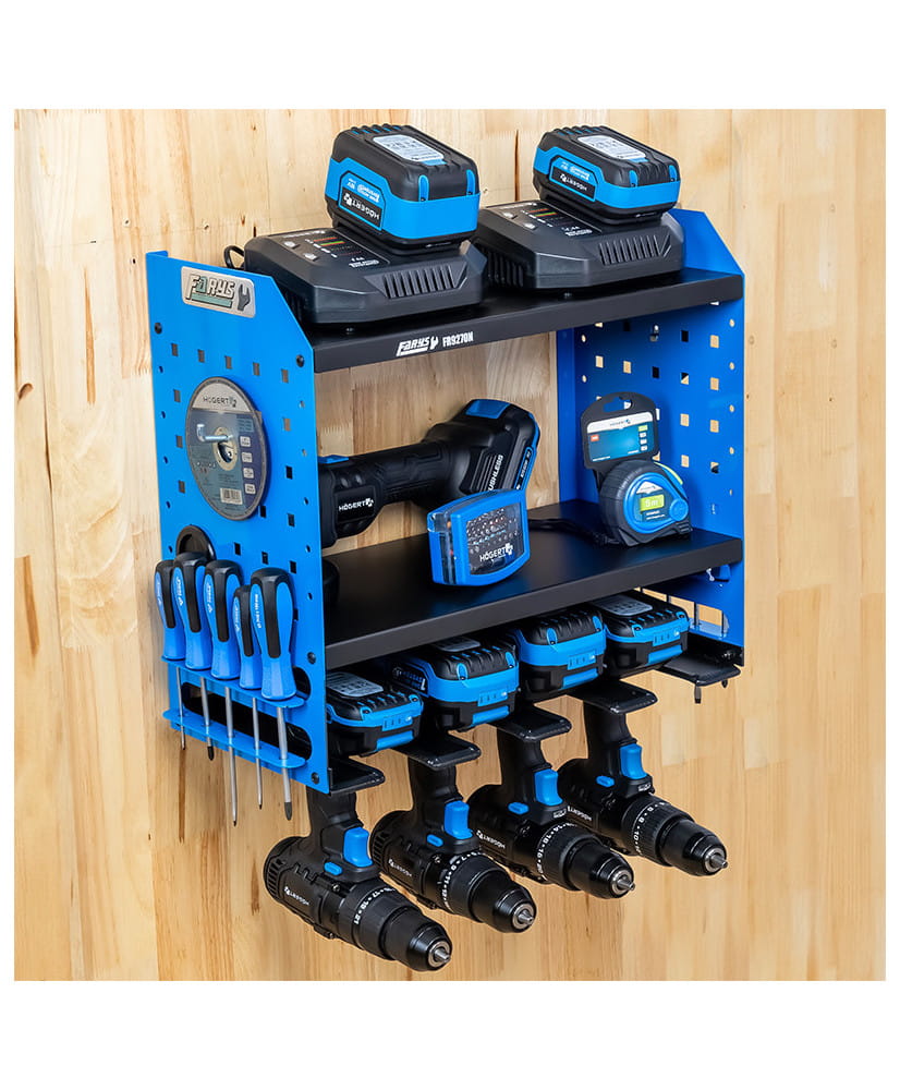 Wyposażona w 4 uchwyty na elektronarzędzia, zapewnia to wystarczającą przestrzeń, by pomieścić niezbędne narzędzia w zorganizowany i dostępny sposób.