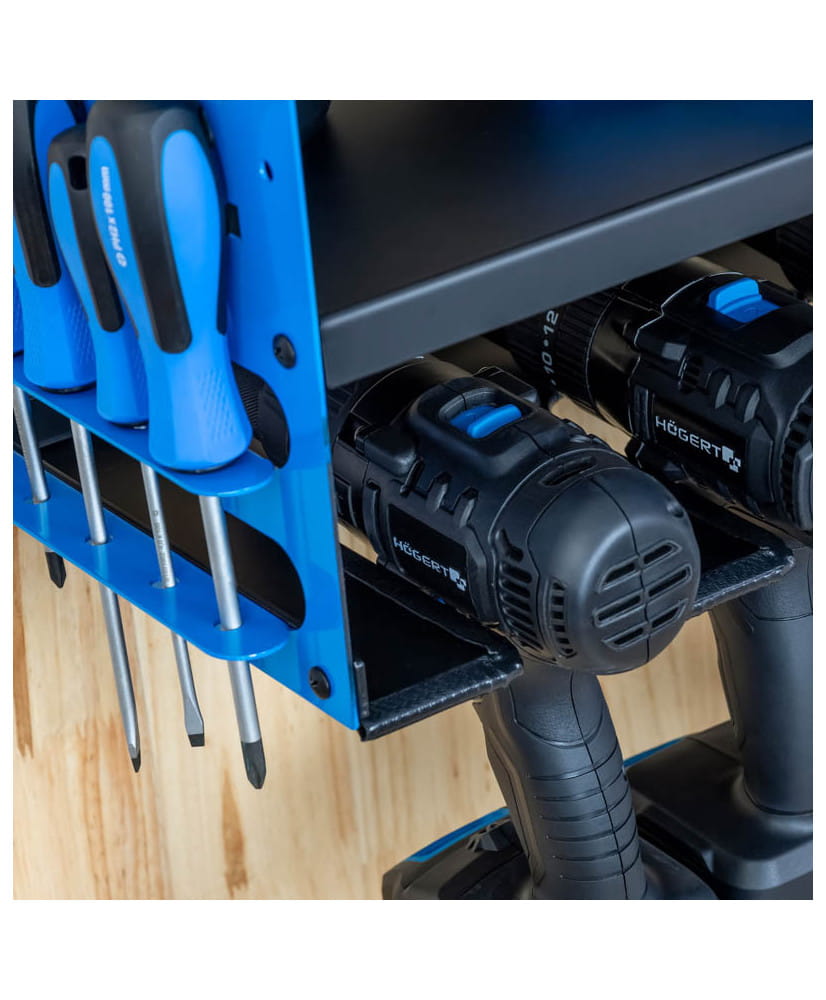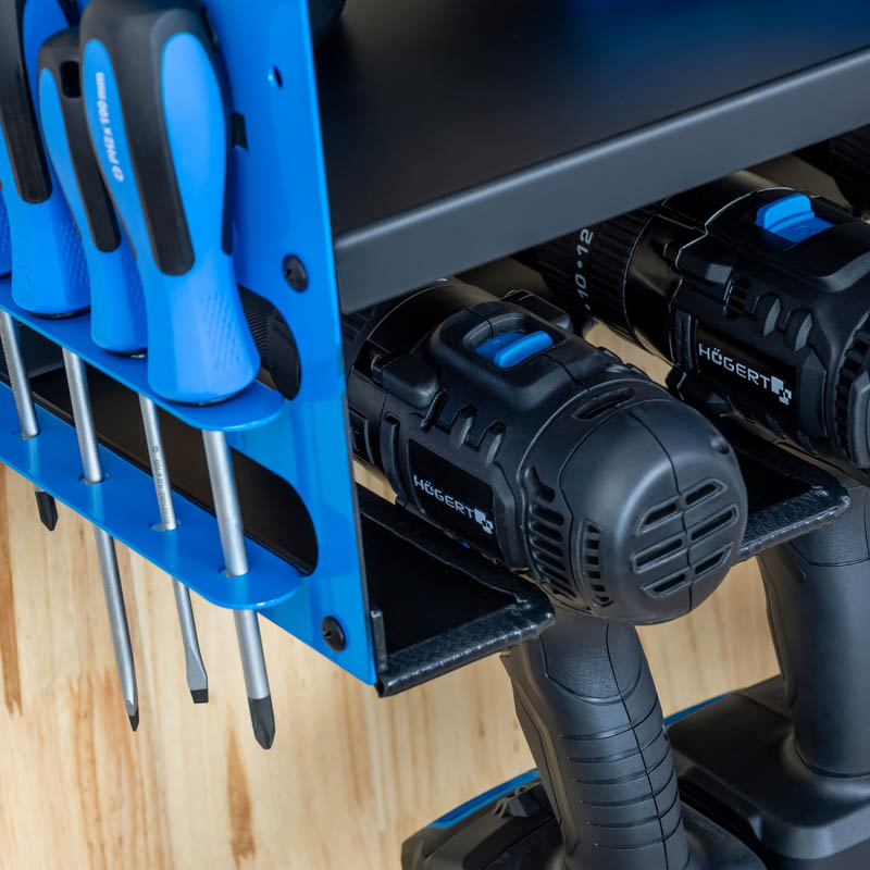Szafka wisząca na elektronarzędzia to funkcjonalne i eleganckie rozwiązanie do przechowywania i organizacji sprzętu warsztatowego.