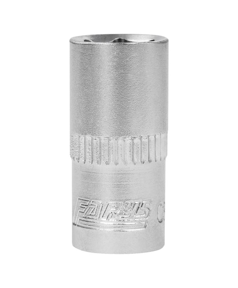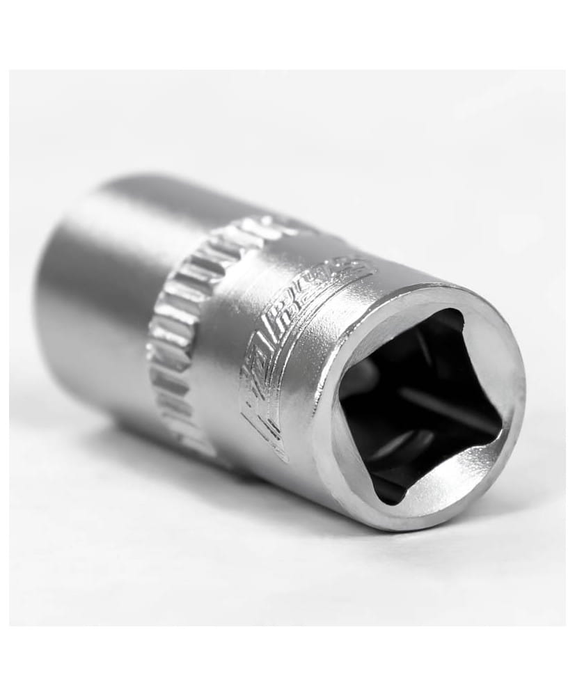 Krótka nasadka metryczna sześciokątna na trzpień kwadratowy 1/4", wykonana z wysokogatunkowej stali chromowo-wanadowej z pojedyńczym radełkowaniem.