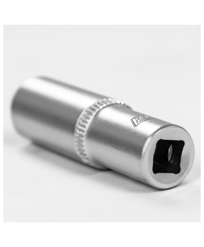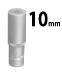 Długa nasadka metryczna sześciokątna na trzpień kwadratowy 1/4", wykonana z wysokogatunkowej stali chromowo-wanadowej z pojedyńczym radełkowaniem.