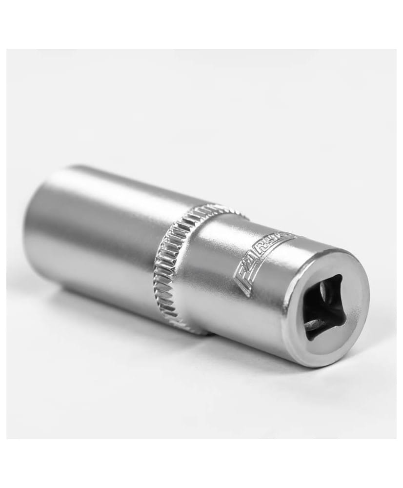 Długa nasadka metryczna sześciokątna na trzpień kwadratowy 1/4", wykonana z wysokogatunkowej stali chromowo-wanadowej z pojedyńczym radełkowaniem.