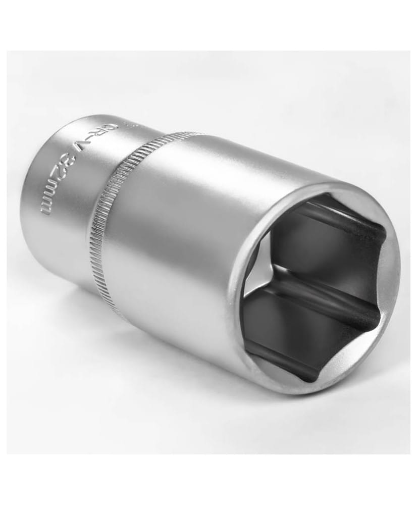 Długa nasadka metryczna sześciokątna na trzpień kwadratowy 1/2", wykonana z wysokogatunkowej stali chromowo-wanadowej z pojedynczym radełkowaniem.