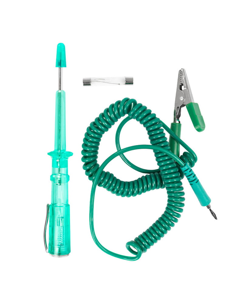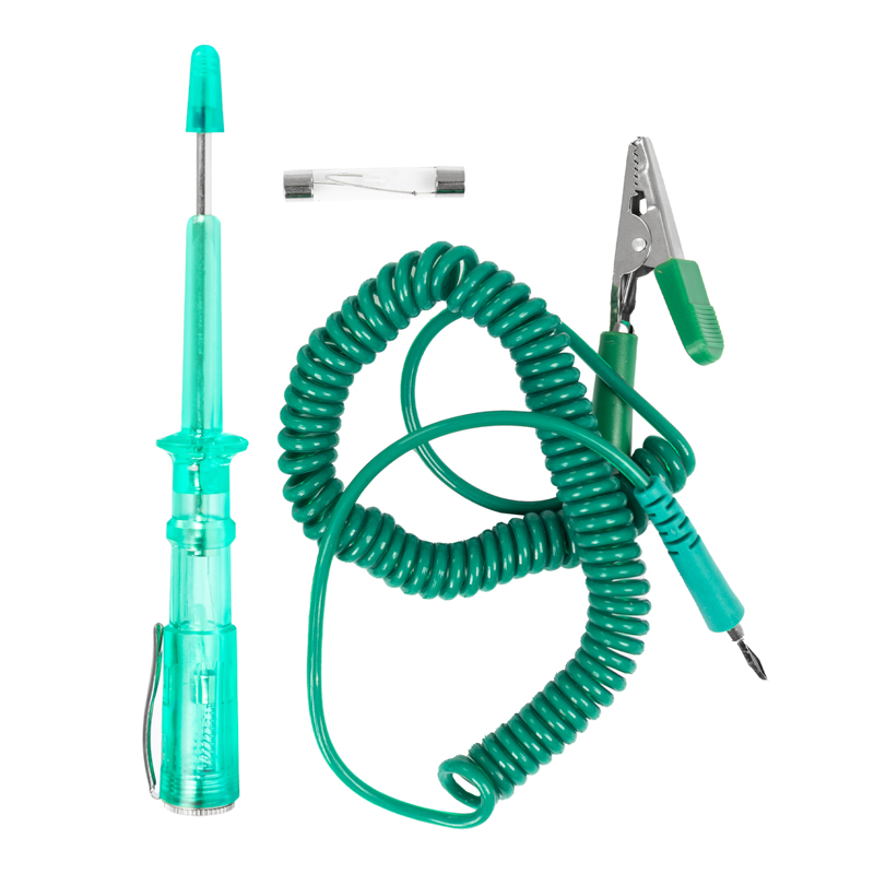 - Zastosowanie: Do testowania bezpieczników oraz napięcia w poszczególnych elementach samochodu jak gniazda świateł. Na występowanie napięcia wskazuje sygnał świetlny za pomocą umieszczonej wewnątrz lampki wskaźnikowej.