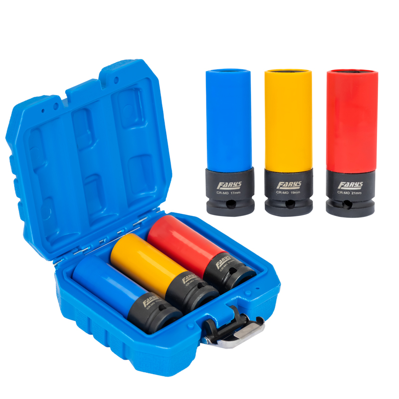 Nasadki do felg aluminiowych alufelg 1/2'', 17, 19, 21mm - zestaw 3szt. Farys FR2378