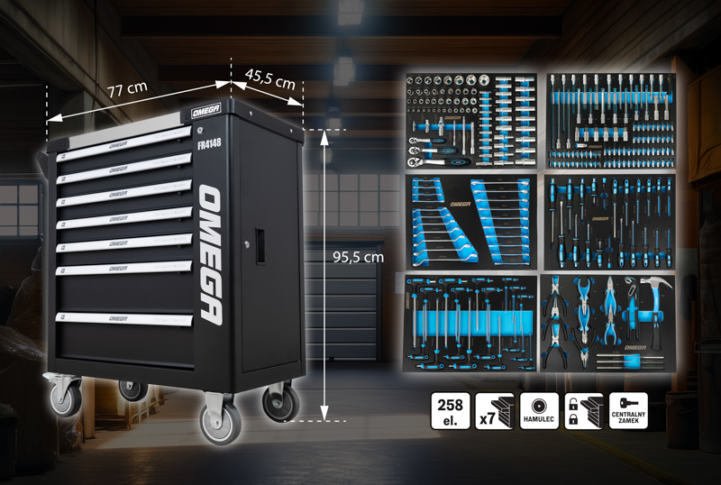 SZAFKA WARSZTATOWA WÓZEK NARZĘDZIOWY NARZĘDZIA KPL 258 el.