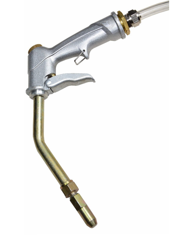 Końcówka pistoletu posiada specjalną blokadę, która zapobiega wylewaniu się pozostałości oleju po skończonej pracy. Jest to bardzo praktyczne rozwiązanie, która pozwala na prostsze utrzymanie czystości na stanowisku pracy.