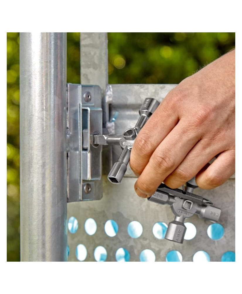 -Klucz wielofunkcyjny do zamknięć stosowanych w instalacjach technicznych budynków (w systemach grzewczych i sanitarnych, klimatyzacji i wentylacji, instalacjach elektrotechnicznych), w instalacjach zasilających gazu i wody oraz do systemów odcinających