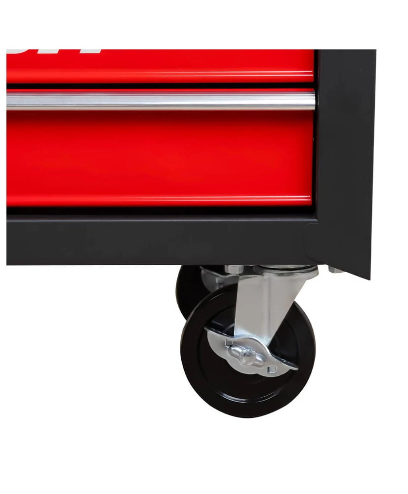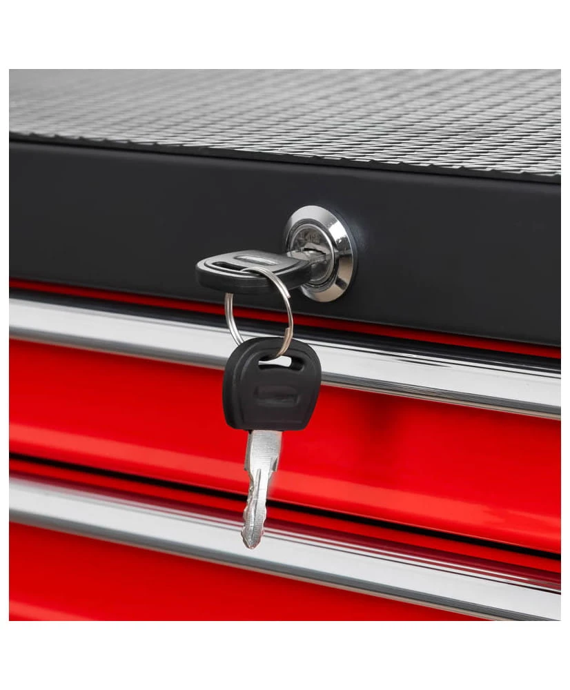 Dodatkowym atutem są szuflady z kulkowymi prowadnicami. Zapewniają one łatwe otwieranie i zamykanie. Centralny zamek na klucz zabezpieczy przed dostępem do narzędzi bez wiedzy i zgody właściciela.