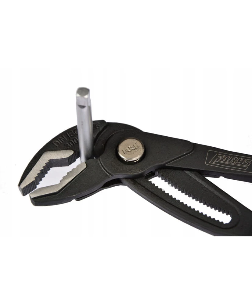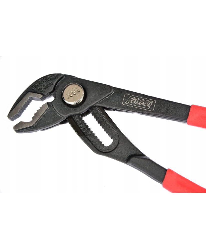 Profesjonalne uniwersalne szczypce nastawne firmy FARYS do rur oraz innych elementów złącznych np. drążków kierowniczych. Przydatne do wszelkiego rodzaju prac instalacyjnych i montażowych np. w warsztacie, serwisie.
