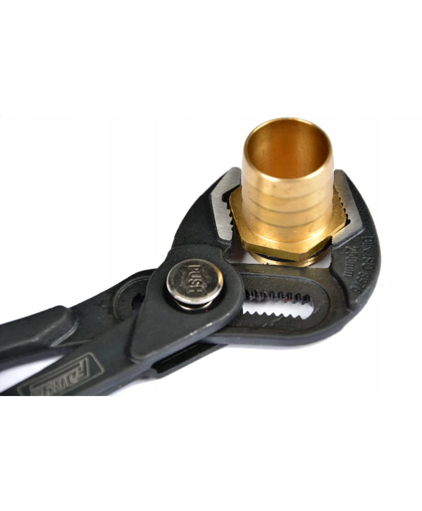 -Szczypce same zaciskają się na rurach i nakrętkach: nie zsuwają się z chwytanego przedmiotu, wymagają użycia niewielkiej siły.
