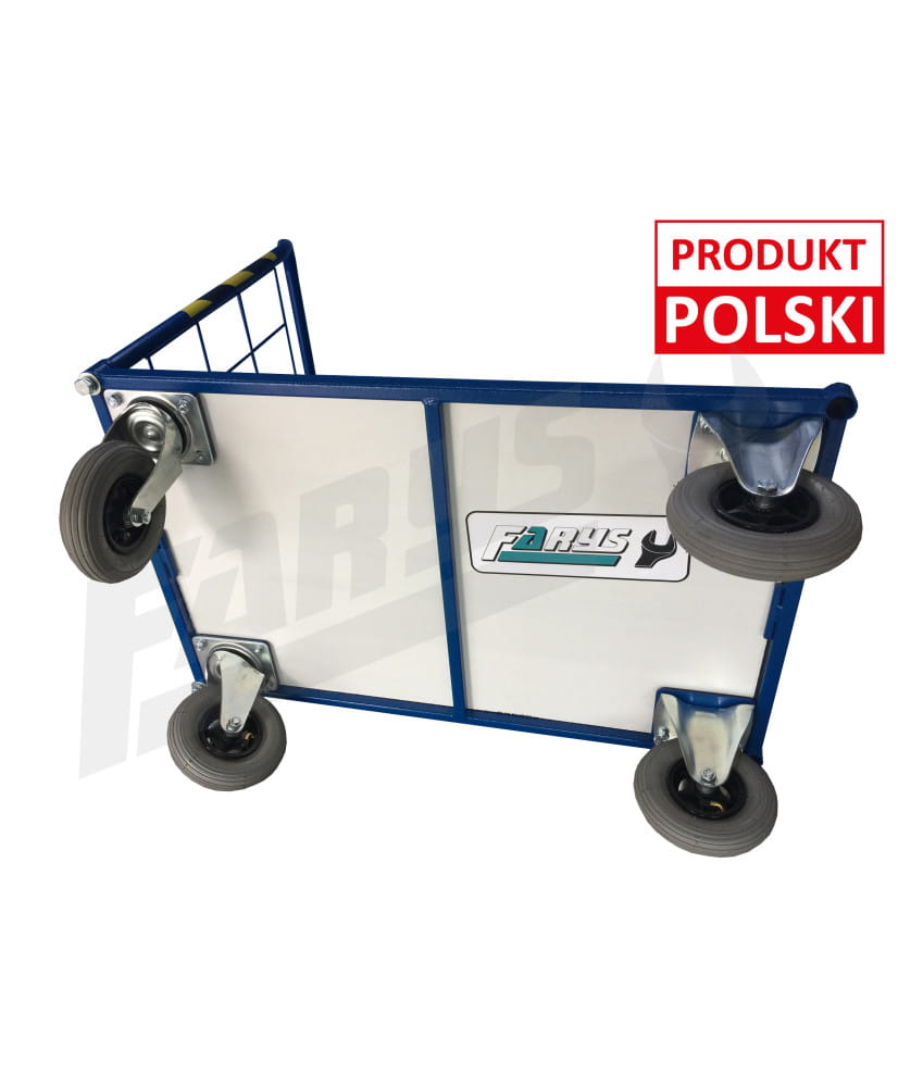 To kompaktowy wózek do przewożenia różnego rodzaju materiałów o wadze do 400 kg. Doskonale sprawdza się w magazynach, hurtowniach, sklepach, biurach, archiwach, gospodarstwach rolnych i ogrodniczych. Wzmocniona przestrzeń ładunkowa wózka wypełniona została wodoodporną, antypoślizgową sklejką o grubości 12 mm.